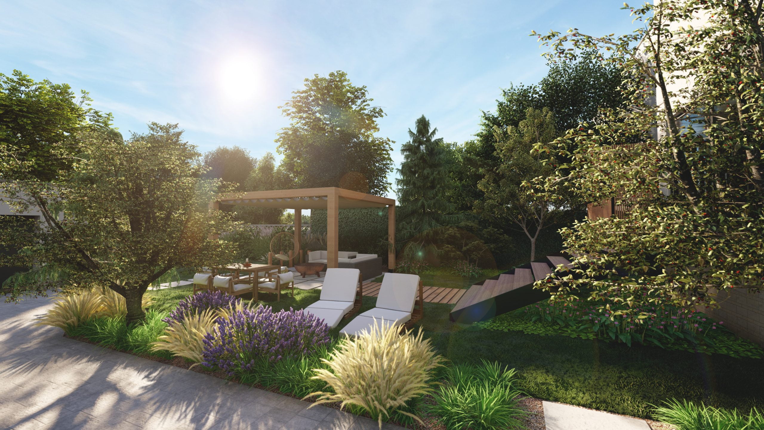 Wąski ogród z 2 tarasami