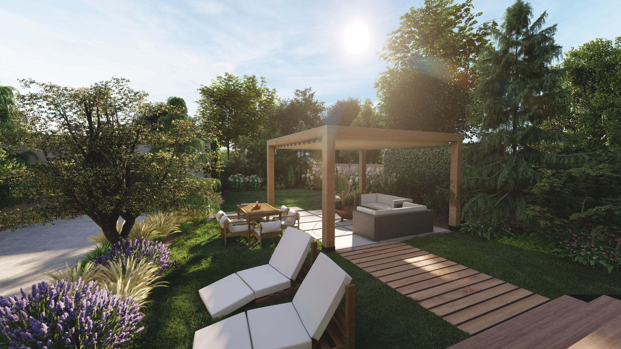 Ogród z brzozami