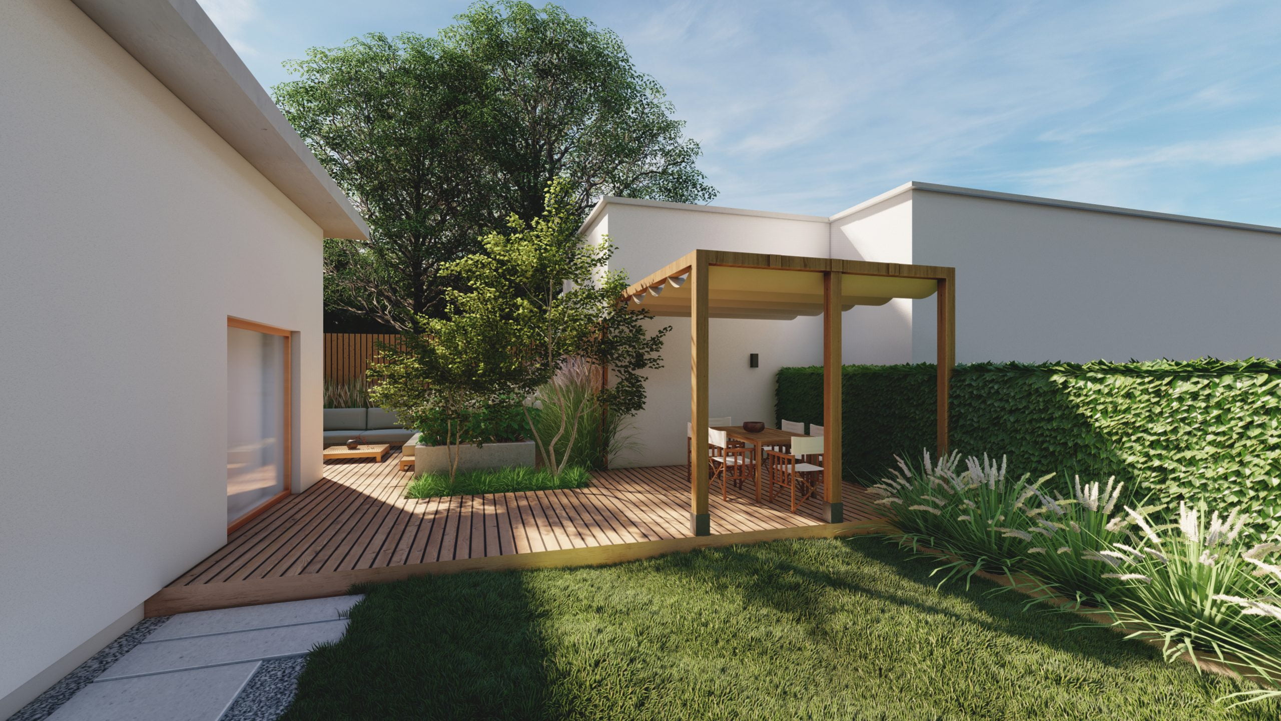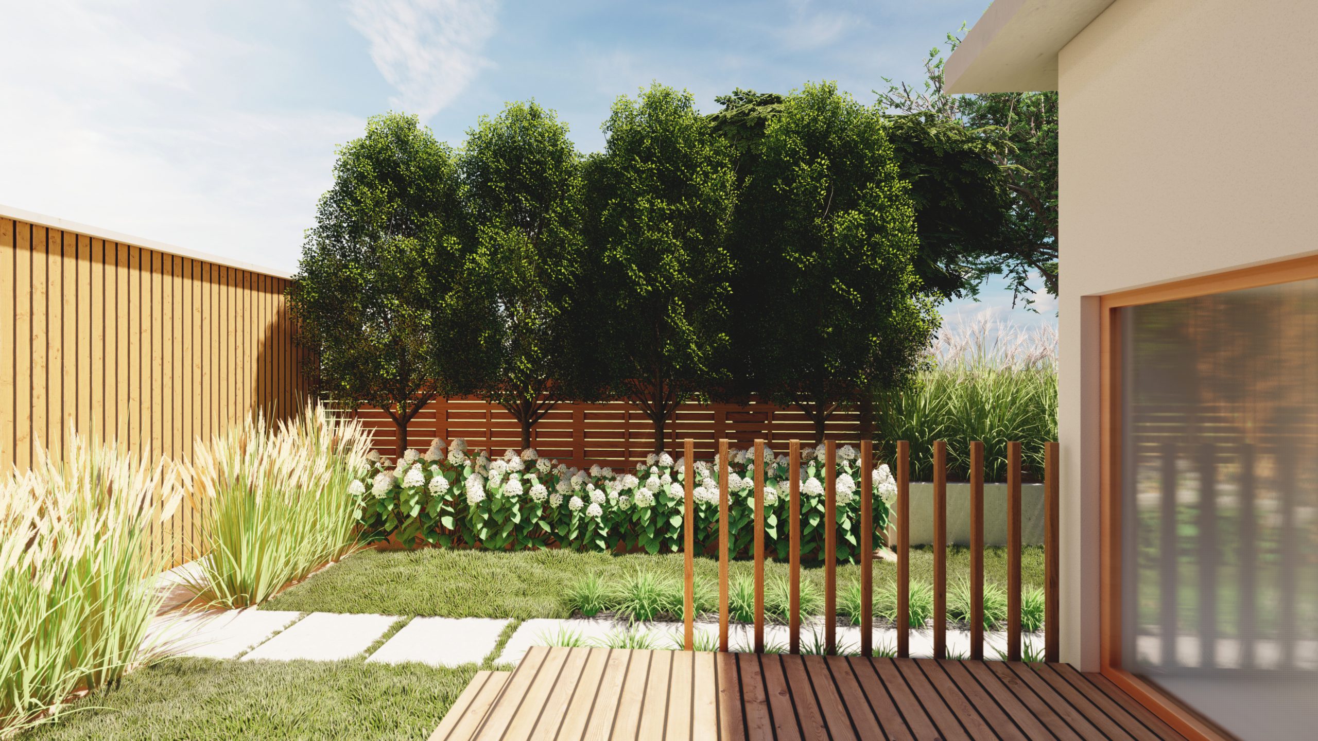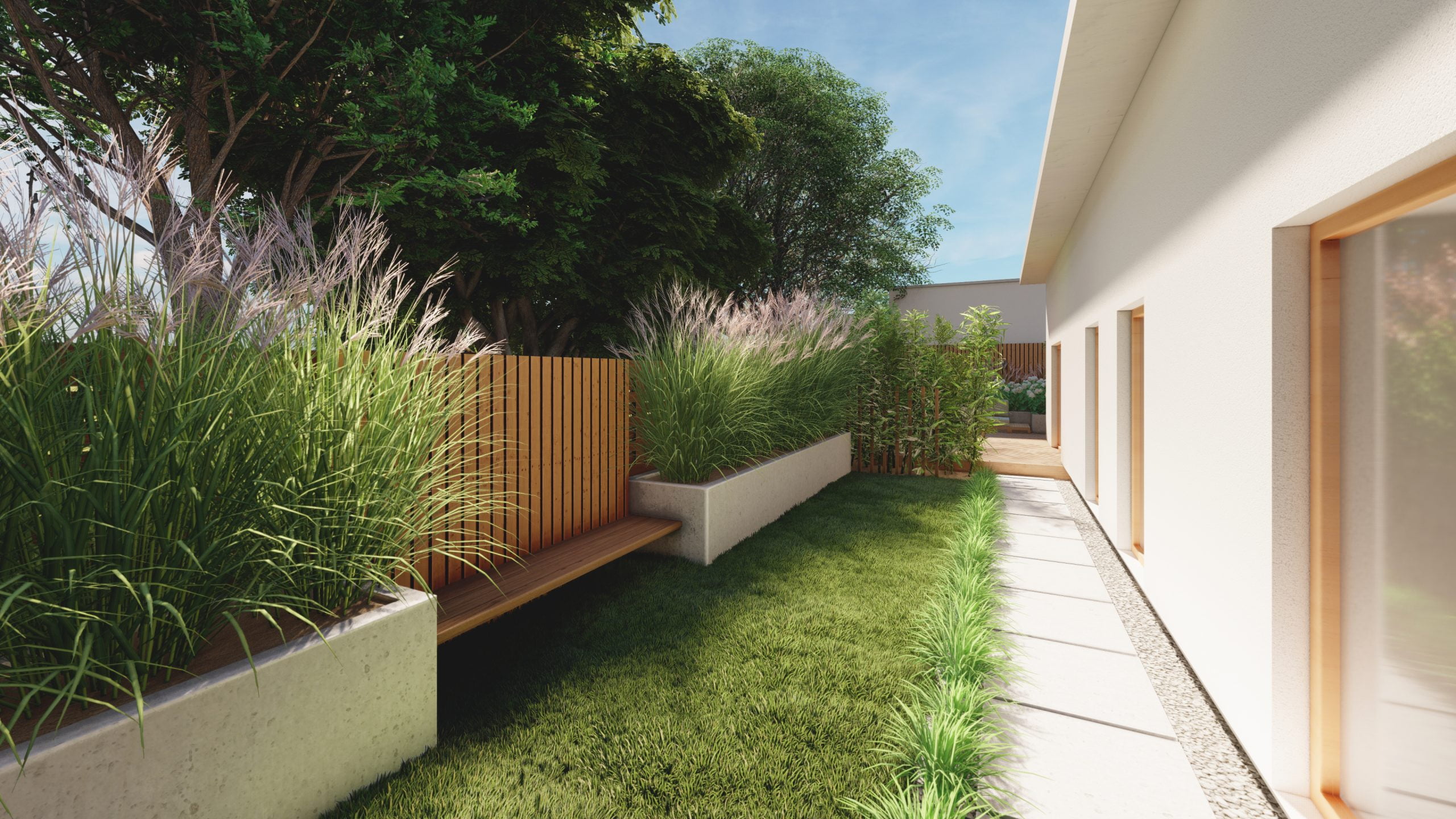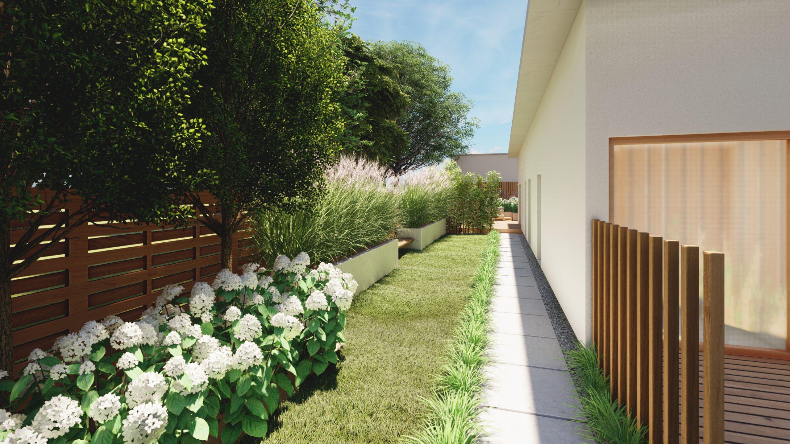 Projekt > Wąski ogród z 2 tarasami