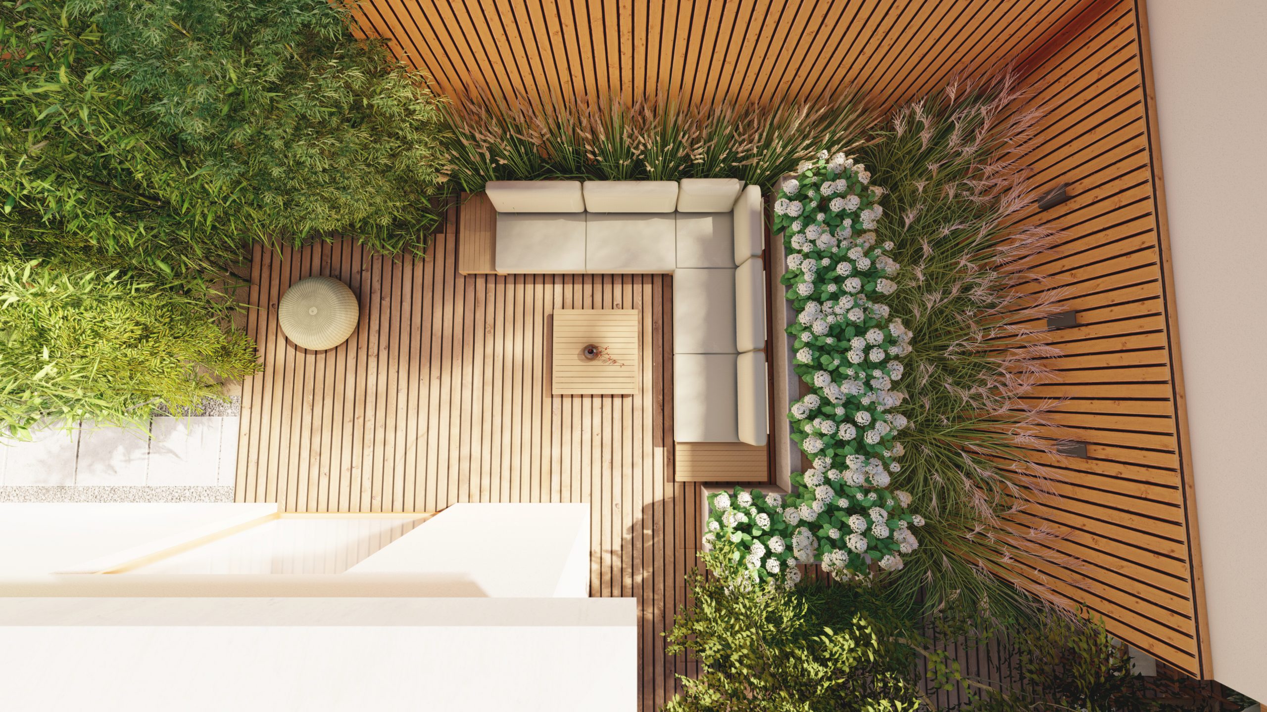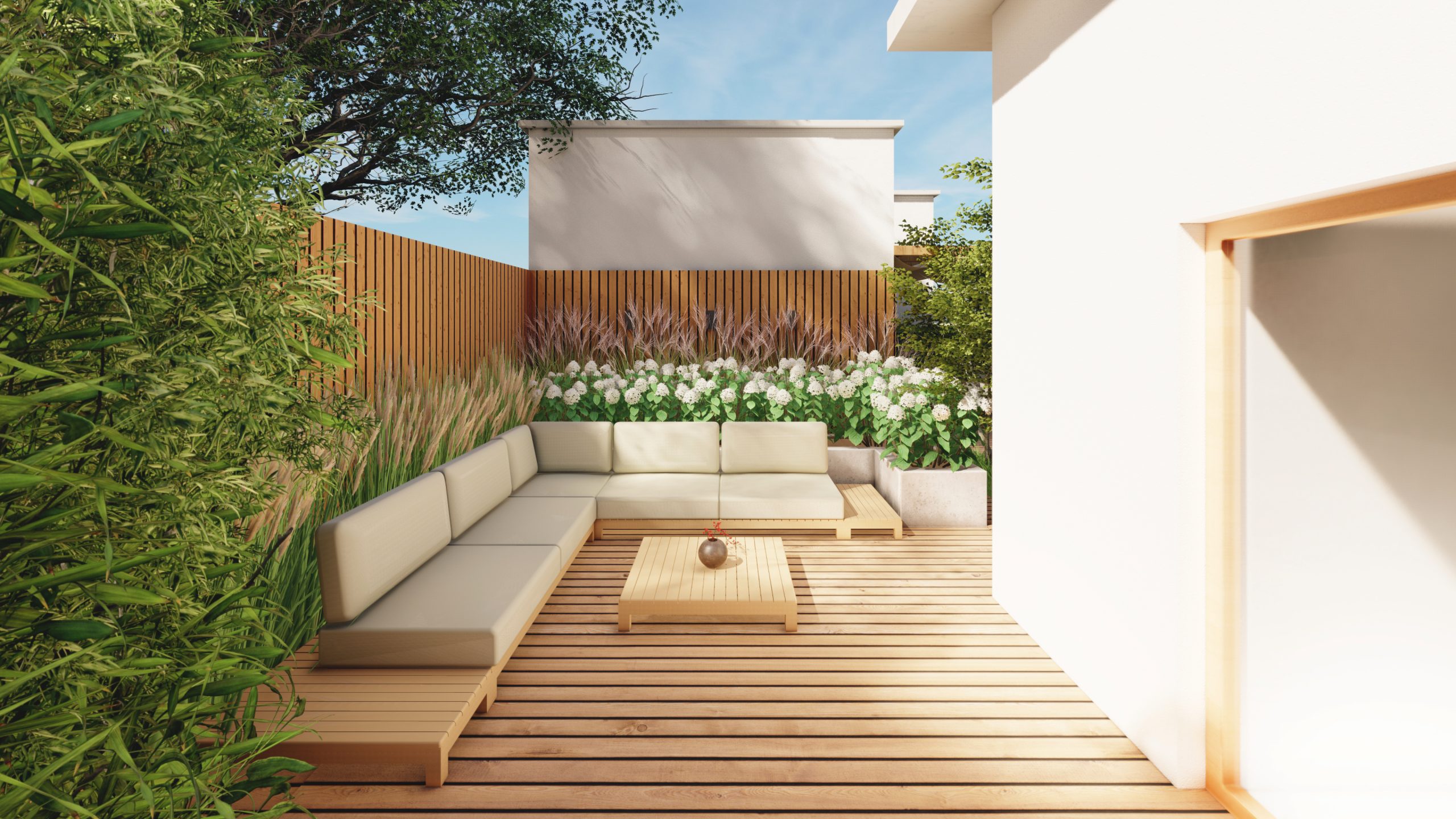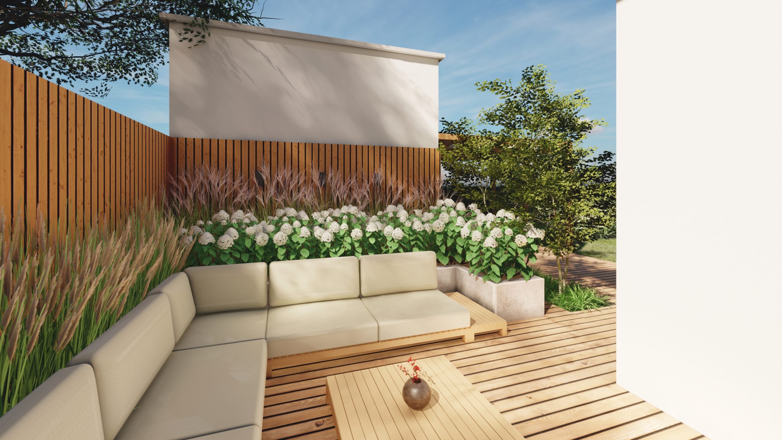 Wąski ogród z 2 tarasami